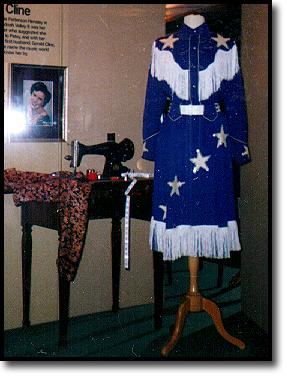 Blue cowgirl outfit and sewing machine donated to the museum by Mrs Hensley.